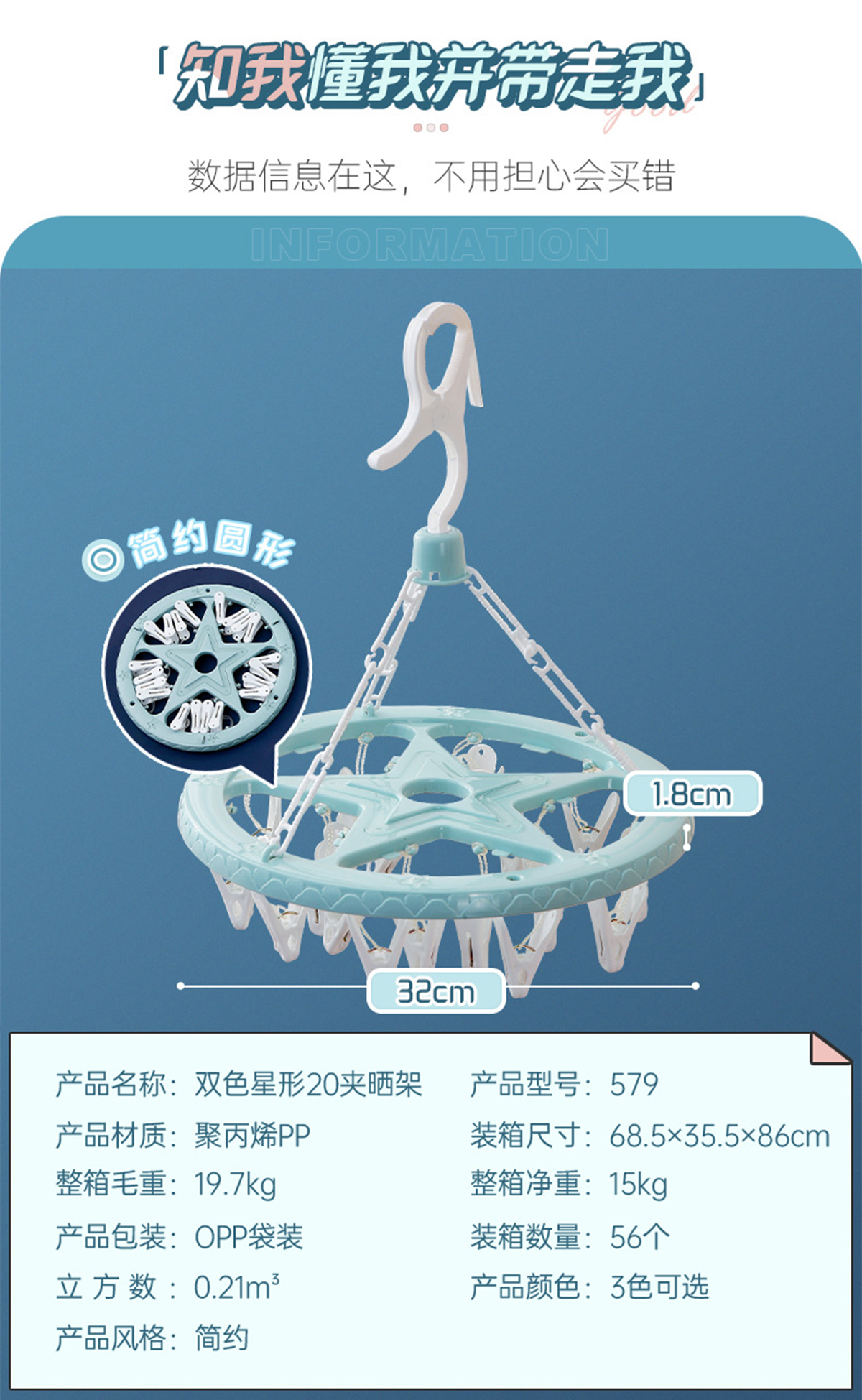 雙色星形20夾曬架 2023年新色