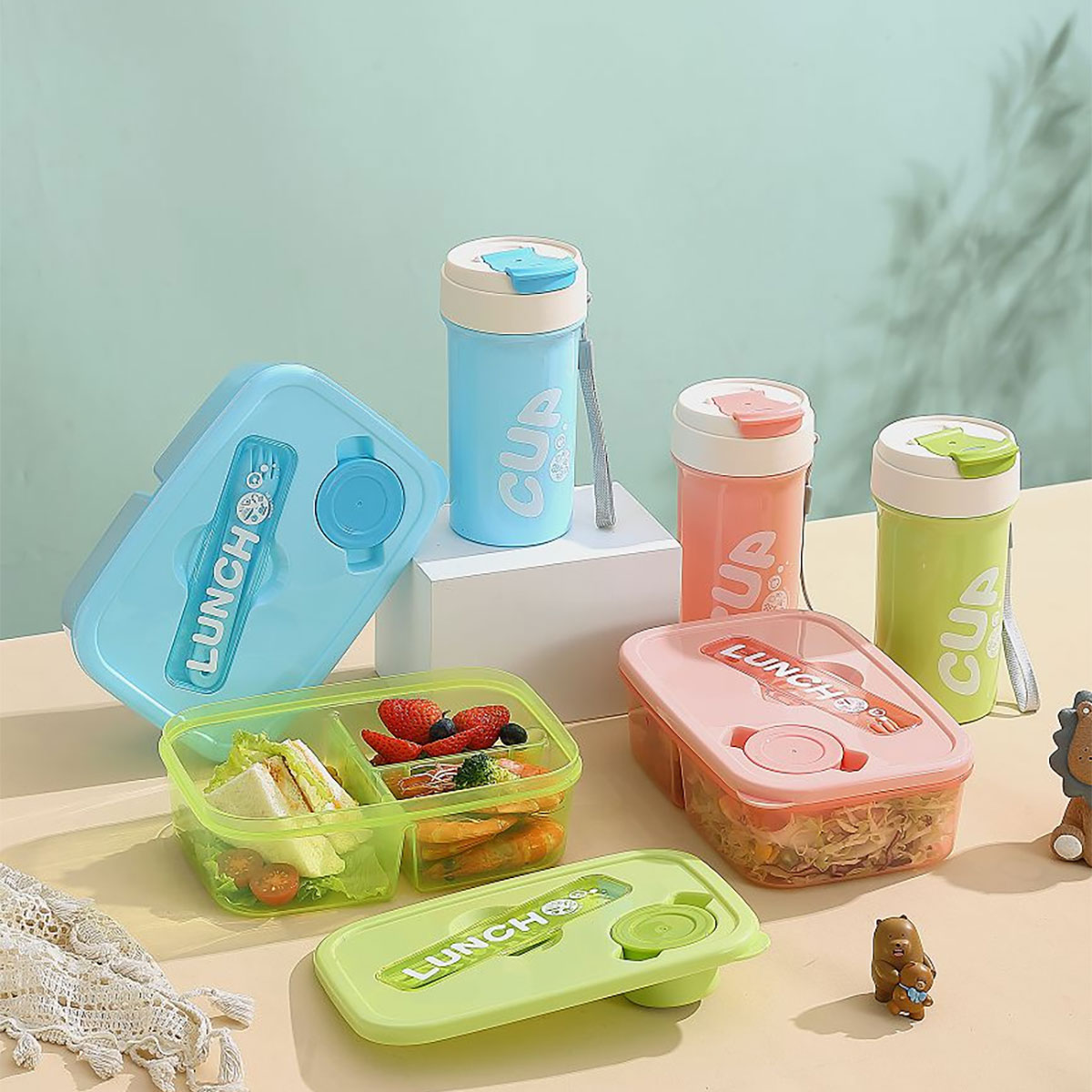 簡(jiǎn)約套裝飯盒(飯盒950ml+水杯480ml)