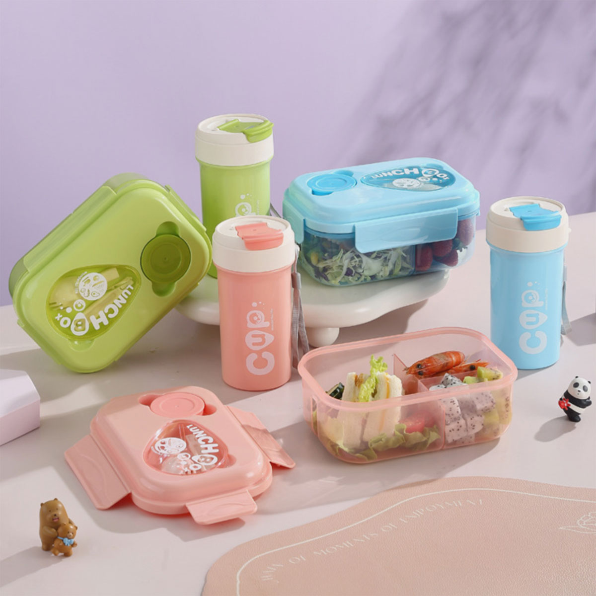 滴水三格套裝飯盒(飯盒1100ML+水杯480ML)